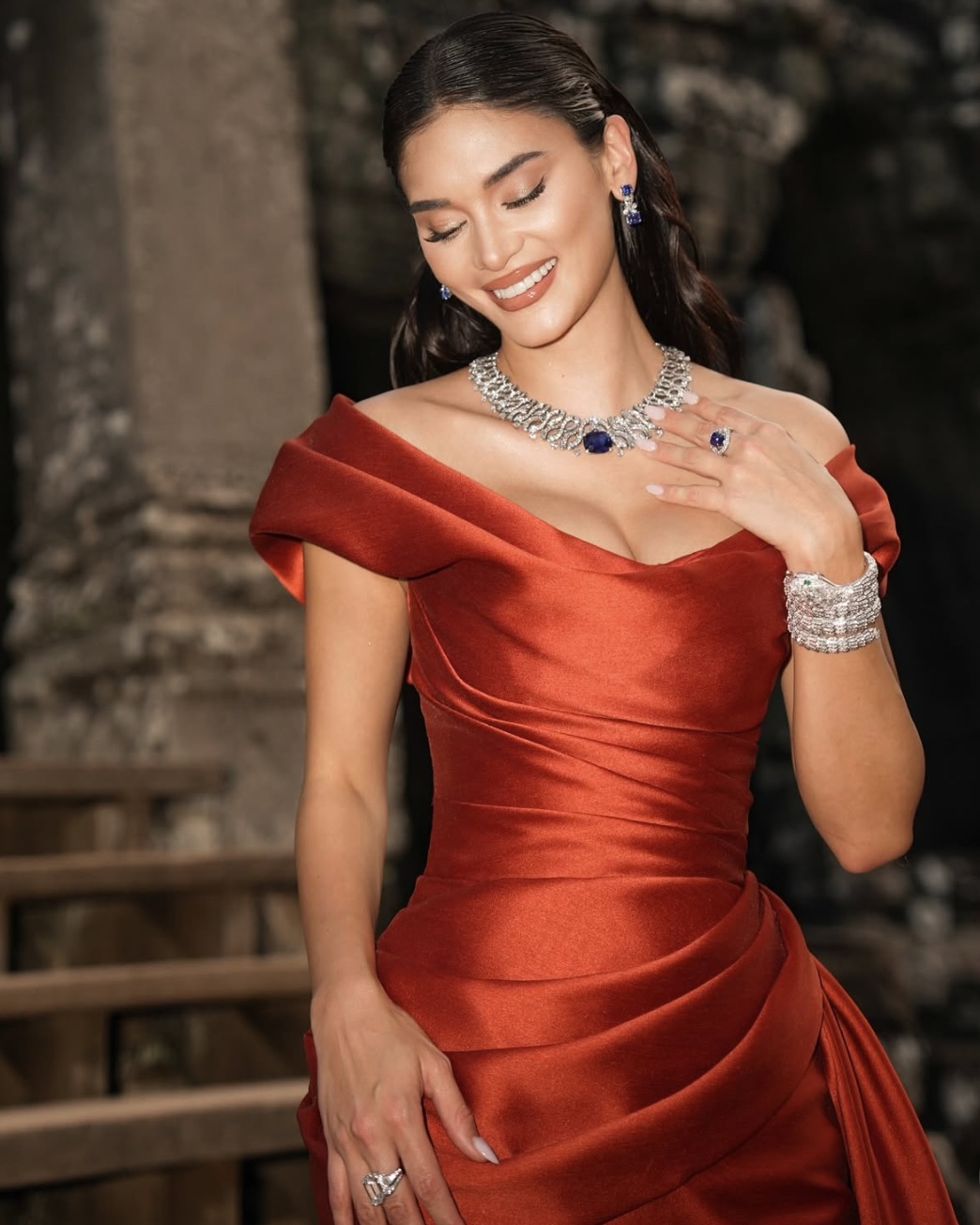 Pia បានគ្រោងរ៉ូបពណ៌ត្នោតគូសមជាមួយនឹងកាបូបដៃពណ៌ត្នោតស្រាលរបស់ Bvlgari រួមជាមួយគ្រឿងអលង្ការផ្គូផ្គងដែលបំពេញរូបរាងនាងយ៉ាងស្រស់ស្អាត។ ក្នុងកម្មវិធីនោះ Pia បានស្លៀករ៉ូបដ៏ប្រណិតមួយគូជាមួយនឹងគ្រឿងអលង្ការ Bvlgari ដែលមើលទៅភ្លឺចែងចាំង និងស្អាតលើសពីធម្មតា។