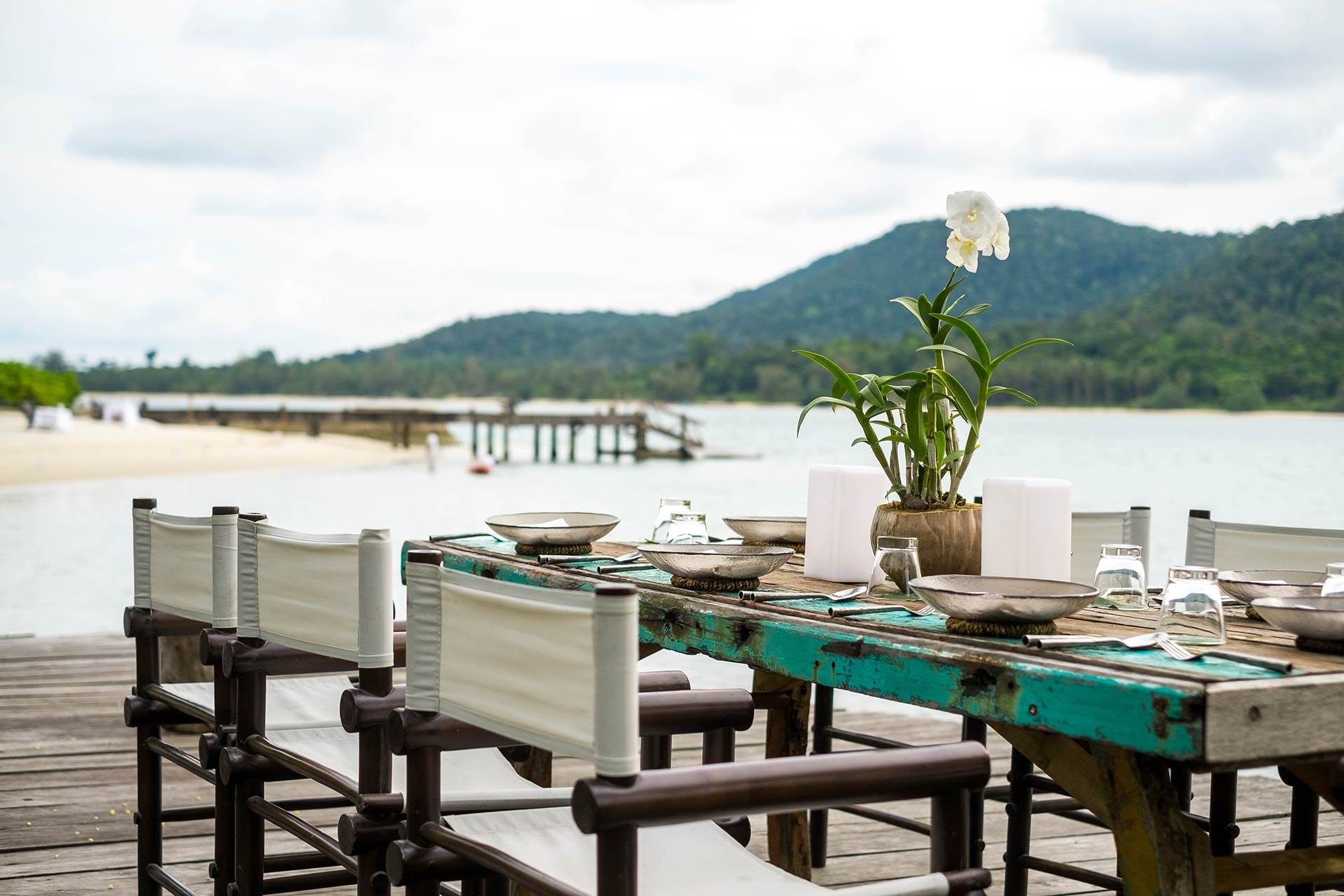 ម្ហូបអាហារខ្មែរ និង អឺរ៉ុប ត្រូវបានរៀបចំយ៉ាងផ្ចិតផ្ចង់ នៅក្នុងភោជនីយដ្ឋាន នៅលើកោះ។ បន្ទាប់ពីស្រស់ស្រូបអាហារពេលល្ងាចរួចរាល់ ភ្ញៀវអាចអង្គុយលំហែអារម្មណ៍ ហូប cocktail ឫ ស្រាក្រហម នៅក្នុង Lounge ដ៏ប្រណិត។