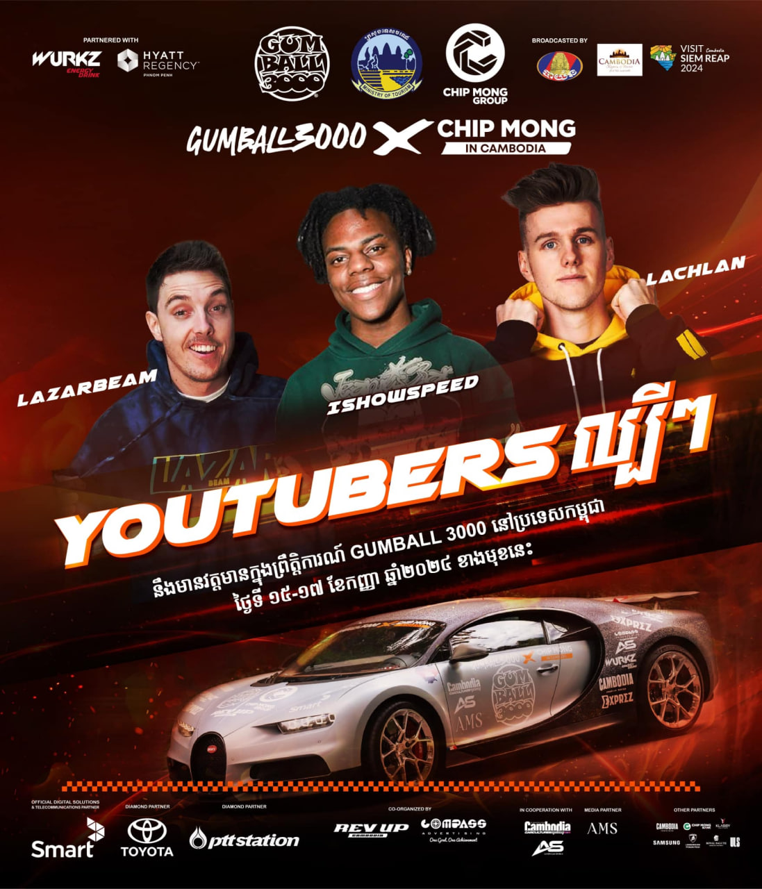 សូមបញ្ជាក់ថានៅក្នុងកម្មវិធី Gumball 3000 ក៏មានវត្តមាន Influencer ខ្មែរល្បីៗចូលរួមផងដែរ មានដូចជា ៖