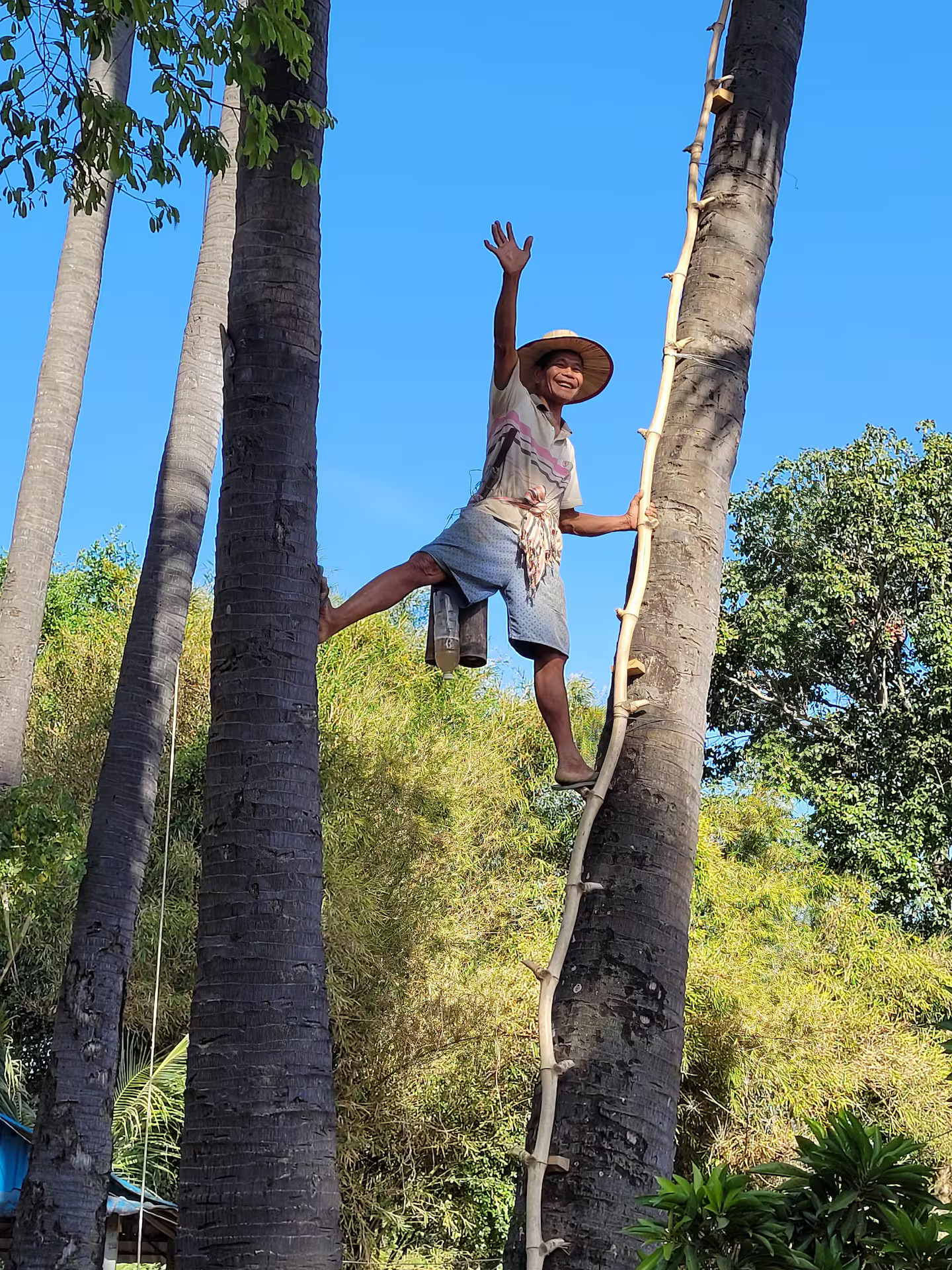 និយាយពីទូក ដែលខ្ញុំបានជួលជិះ អ្នកធ្វើការនៅលើទូកនេះ ភាគច្រើនជាពលរដ្ឋដែលរស់នៅក្នុងតំបន់នេះតែម្តង។ ពួកគេ សប្បាយចិត្តនិងរីករាយក្នុងការចែករំលែកនូវរបៀបរបបរស់នៅ វប្បធម៌របស់ប្រទេសកម្ពុជា មកកាន់ភ្ញៀវទេសចរបរទេស។ ជិះប្រហែល ៨ គីឡូម៉ែត្រ ខ្ញុំបានធ្វើដំណើរមកដល់ភូមិតូចមួយ។ នៅក្នុងភូមិនោះ ខ្ញុំបានជួប លោក រី ដែលជាអ្នកភូមិប្រកបរបរ ឡើងត្នោត។ ខ្ញុំ បានមើលឃើញពីជីវភាព និង ជីវិតរស់នៅប្រចាំថ្ងៃរបស់ លោក រី។ ជារៀងរាល់ថ្ងៃ លោក តែងតែពាក់អាវយឺតដៃខ្លី ខោជើងខ្លី មួកឡើងត្នោត និង ក្រម៉ាមួយក្រវ៉ាត់ជាប់នឹងចង្កេះ។ នៅពេលឡើងត្នោត លោក រី មិនភ្លេចឡើយនូវរបស់សំខាន់ មានដូចជាបំពង់ទឹកត្នោត ចំនួន ២ ជាមួយនឹងកាំបិត ដាក់សៀតនឹងចង្កេះ។ បើទោះបីជាមានវ័យ ៧២ ឆ្នាំក្តី ប៉ុន្តែ លោក រី នៅតែមានកាយសម្បទារឹងមាំ ដើម្បីឡើងត្នោត ព្រោះនេះជាការងារដែលលោក អាចធ្វើបានដើម្បីរកចំណូលចិញ្ចឹមជីវិត។