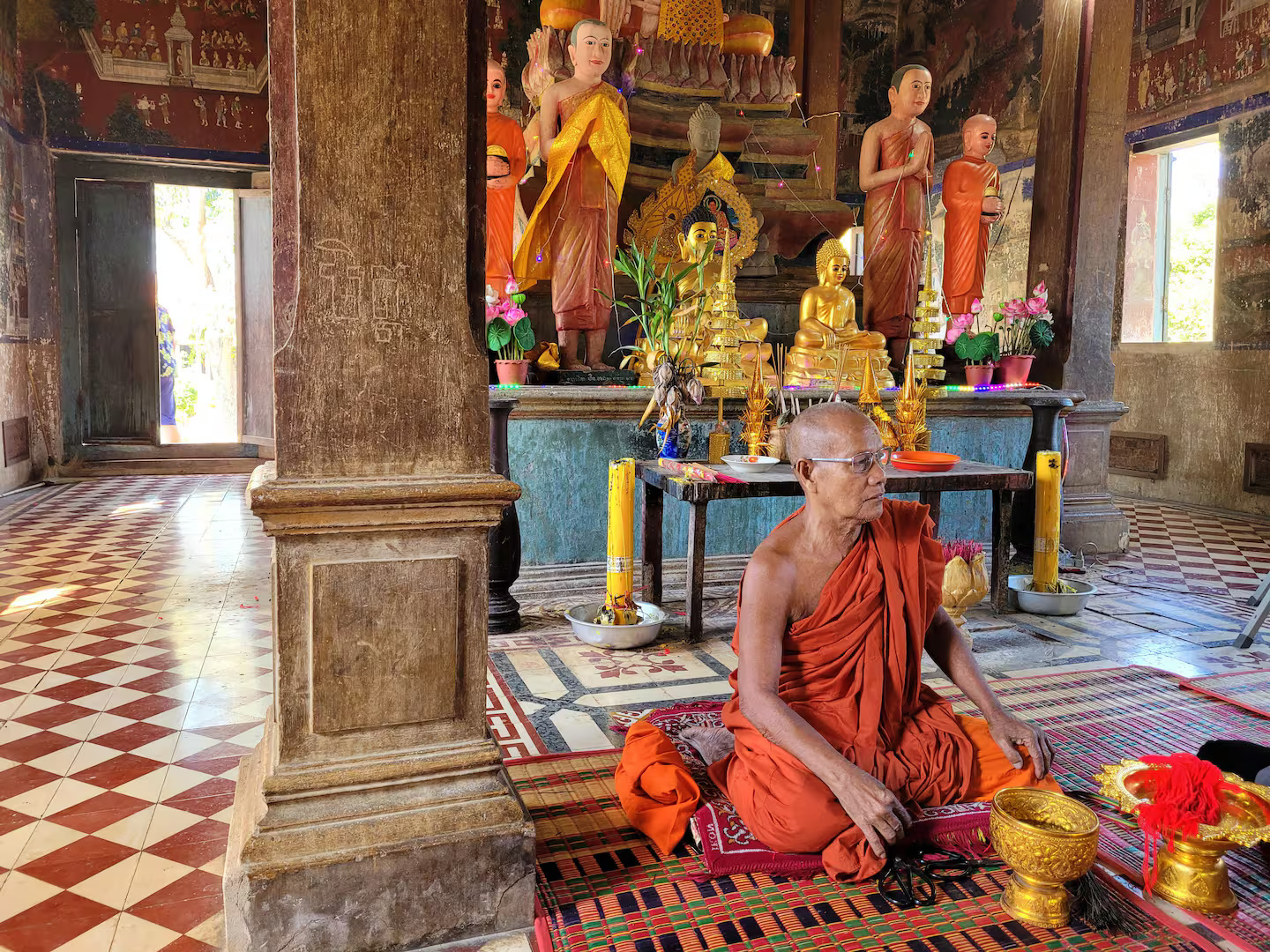 ចូលដល់ថ្ងៃបន្ទាប់ ខ្ញុំបានបន្តដំណើរកម្សាន្ត នៅក្នុងភូមិតូចមួយរបស់កម្ពុជា ដោយជិះរទេះគោ។ រទេះគោ បានធ្វើដំណើរយឺតៗ នៅលើផ្លូវដី ដែលមិនសូវជាស្អាតប៉ុន្មានទេ ព្រោះនេះជាតំបន់ជនបទ។ អ្វីដែលពិសេសជាងជិះរទេះគោ គឺនៅពេលដែលខ្ញុំ បានធ្វើដំណើរមកដល់ក្នុងវត្តមួយ ឈ្មោះ ពុទ្ធិរក្ខារាម ជាកន្លែងដែលគេបានប្រារព្ធពិធីប្រណាំង រទេះគោ។ ខ្ញុំ បានឡើងទៅជួបនឹងព្រះសង្ឃមួយអង្គ។ ព្រះអង្គ ជាគ្រូសូត្រស្តាំ ប្រចាំវត្ត ហើយលោកបានប្រោសព្រំទឹកមន្ត និងបានប្រគល់ខ្សែកថា ពណ៌ក្រហម សម្រាប់ពាក់នៅលើដៃ។ តាមជំនឿ គេពាក់ខ្សែកថា ដើម្បីសុខសប្បាយ ហើយខ្ញុំនឹងពាក់ខ្សែនេះជាប់ដៃរហូត មិនដោះចេញទេ។ ខ្ញុំ និង មិត្តដែលធ្វើដំណើរមកជាមួយគ្នា បានចាកចេញពីវត្ត ដោយជិះម៉ូតូ ជាមធ្យោបាយធ្វើដំណើរ។ នៅតាមផ្លូវ ខ្ញុំបានឃើញវាលស្រែខៀវស្រងាត់ និង ទឹកបឹងដែលពោលពេញទៅដោយផ្កាឈូក រីកក្រពុំជាប់ទង គួរជាទីគយគន់ក្រៃលែង។