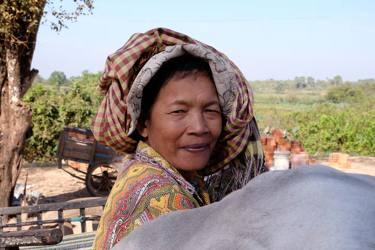 ចូលដល់ថ្ងៃបន្ទាប់ ខ្ញុំបានបន្តដំណើរកម្សាន្ត នៅក្នុងភូមិតូចមួយរបស់កម្ពុជា ដោយជិះរទេះគោ។ រទេះគោ បានធ្វើដំណើរយឺតៗ នៅលើផ្លូវដី ដែលមិនសូវជាស្អាតប៉ុន្មានទេ ព្រោះនេះជាតំបន់ជនបទ។ អ្វីដែលពិសេសជាងជិះរទេះគោ គឺនៅពេលដែលខ្ញុំ បានធ្វើដំណើរមកដល់ក្នុងវត្តមួយ ឈ្មោះ ពុទ្ធិរក្ខារាម ជាកន្លែងដែលគេបានប្រារព្ធពិធីប្រណាំង រទេះគោ។ ខ្ញុំ បានឡើងទៅជួបនឹងព្រះសង្ឃមួយអង្គ។ ព្រះអង្គ ជាគ្រូសូត្រស្តាំ ប្រចាំវត្ត ហើយលោកបានប្រោសព្រំទឹកមន្ត និងបានប្រគល់ខ្សែកថា ពណ៌ក្រហម សម្រាប់ពាក់នៅលើដៃ។ តាមជំនឿ គេពាក់ខ្សែកថា ដើម្បីសុខសប្បាយ ហើយខ្ញុំនឹងពាក់ខ្សែនេះជាប់ដៃរហូត មិនដោះចេញទេ។ ខ្ញុំ និង មិត្តដែលធ្វើដំណើរមកជាមួយគ្នា បានចាកចេញពីវត្ត ដោយជិះម៉ូតូ ជាមធ្យោបាយធ្វើដំណើរ។ នៅតាមផ្លូវ ខ្ញុំបានឃើញវាលស្រែខៀវស្រងាត់ និង ទឹកបឹងដែលពោលពេញទៅដោយផ្កាឈូក រីកក្រពុំជាប់ទង គួរជាទីគយគន់ក្រៃលែង។