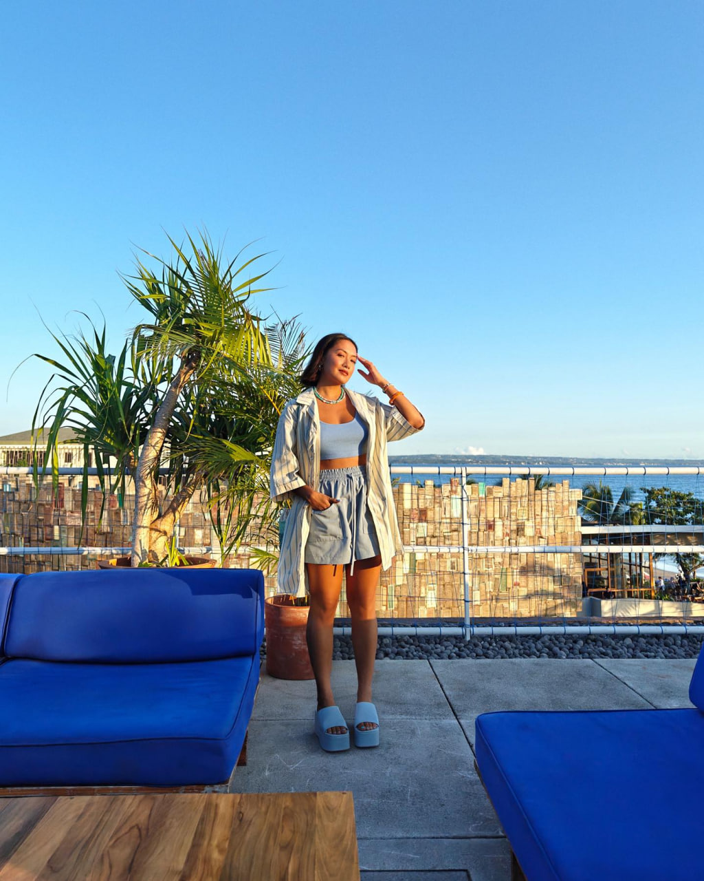 ប្រភេទអាវក្រៅវែង + អាវ CropTop + Boxer Shorts + Sandals