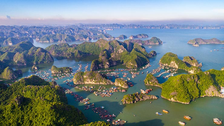 Halong Bay ជាតំបន់ទេសចរណ៍គួរឱ្យទាក់ទាញមួយនៅក្នុងប្រទេសវៀតណាម។ វាជាគោលដៅកំពូល ដែលគេមិនងាយនឹងរំលងឡើយ នៅពេលបានទៅដល់ប្រទេសនេះ។ នៅទីនោះ គេអាចជិះទូកលេងកម្សាន្ត ឫ ទៅទស្សនាភូមិបណ្តែតទឹក Floating Villages ឫ សម្រាកនៅលើឆ្នេរ។